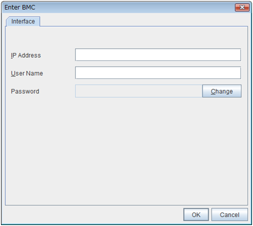 IP Address (Within 80 bytes)Enter the IP address set for the LAN port for managing BMC. User Name (Within 255 bytes)Enter the user name with administrator privilege from the user names configured in BMC.If you do not enter anything, the argument of user name is not configured when the ipmitool command.The valid length of user name varies depending on the ipmitool command and the specification of BMC of the server. Password (Within 255 bytes)Enter the password of the user configured above.The valid length of password varies depending on the specifications of ipmitool command and the BMC of the server.For more information on user name and password, refer to the manual of the server.
