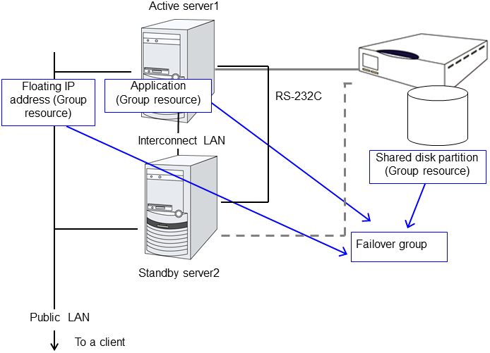 - EXPRESSCLUSTER ServerThe main module of EXPRESSCLUSTER and has all high availability functions of the server. Install this module on each server constituting the cluster.