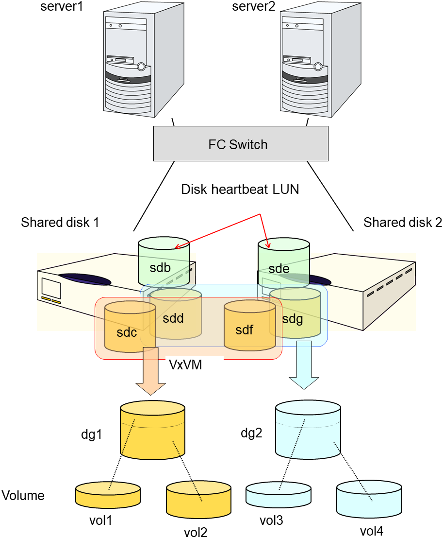 - A disk partition connected to multiple computers and is switchable among computers.(Related terms: Disk heartbeat partition)