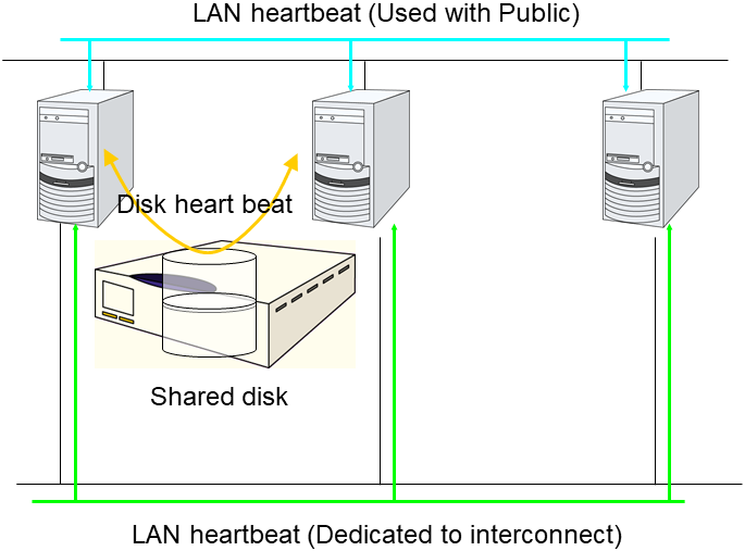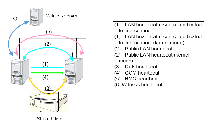 • It is recommended to use both a LAN heartbeat resource and a disk heartbeat resource when you use a shared disk.