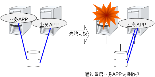 指由于查出故障,待机服务器继承运行服务器上的业务应用程序。