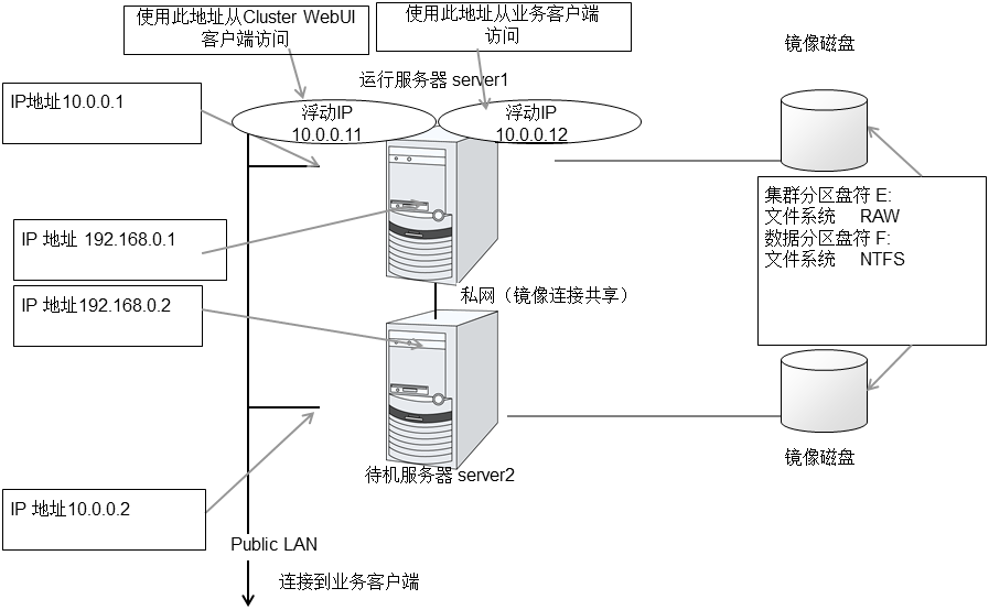 镜像磁盘型集群中用于进行数据镜像的LAN。可通过和内部主网的通用进行设置。