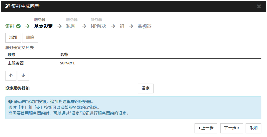 Cluster WebUI 的设置模式的[服务器共通属性]-[主服务器]中显示在最前面的服务器。