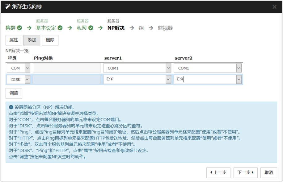 关于网络分区解决与VIP的设置,请参考《参考指南》的"组资源的详细信息"的"理解虚拟IP资源"及"网络分区解决资源的详细信息"。