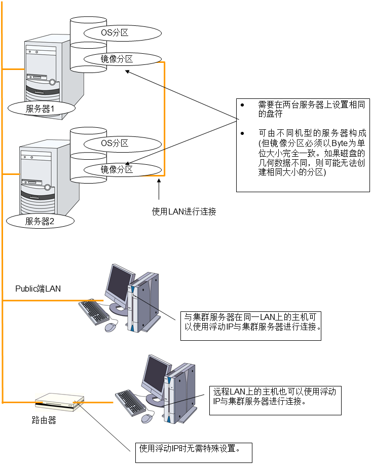 服务器可以为不同机型,但是需要可以支持BMC联动功能。关于可使用的机型,请参阅《开始指南》的"EXPRESSCLUSTER的运行环境"的"硬件运行环境"。