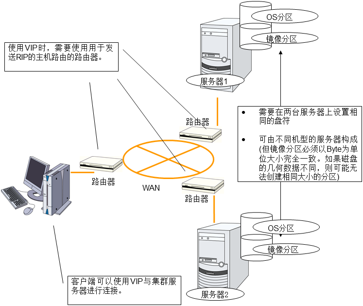 需要确保镜像磁盘上的数据更新所需的足够的通信带宽。如果带宽太窄,则会发生与业务客户端之间的通信延迟和镜像中断。