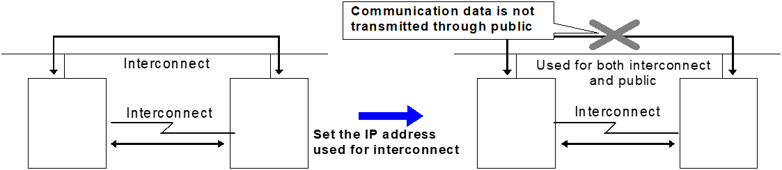 You can set the same IP address to the interconnect LAN interface and the public LAN interface. If you do this, communication data of alert synchronization is transmitted.