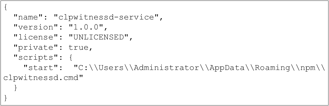 Select Control Panel -> Administration Tools -> Service, and confirm that the service (ex. clpwitnessd-service) with the name specified for "name" of pacage.json has been registered..