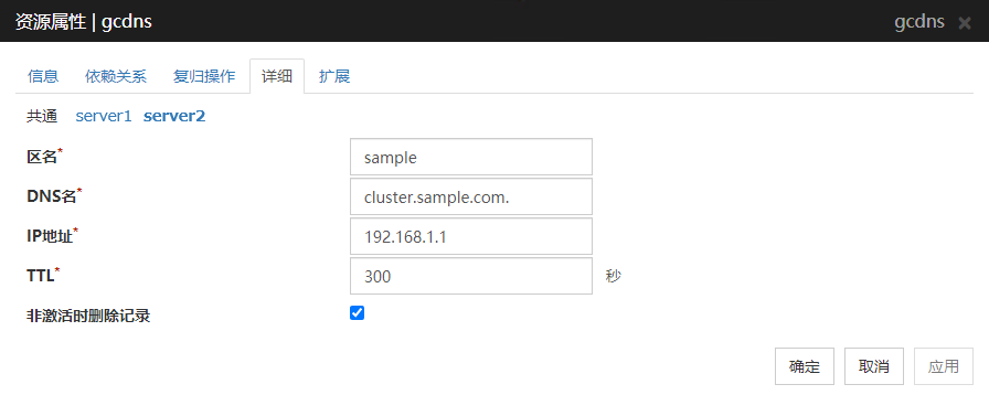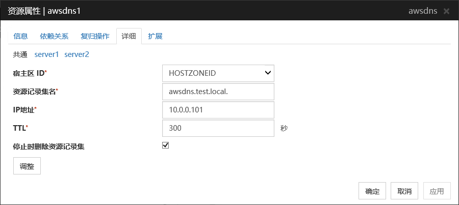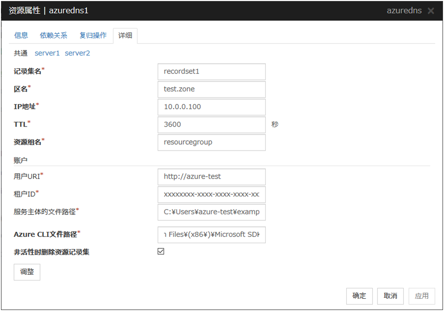 会显示出[Azure DNS资源调整属性]对话框。进行Azure DNS资源的详细信息设置。