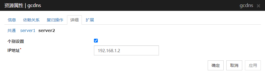 显示[Google Cloud 虚拟IP资源调整属性]对话框。进行Google Cloud 虚拟IP资源的详细设置。