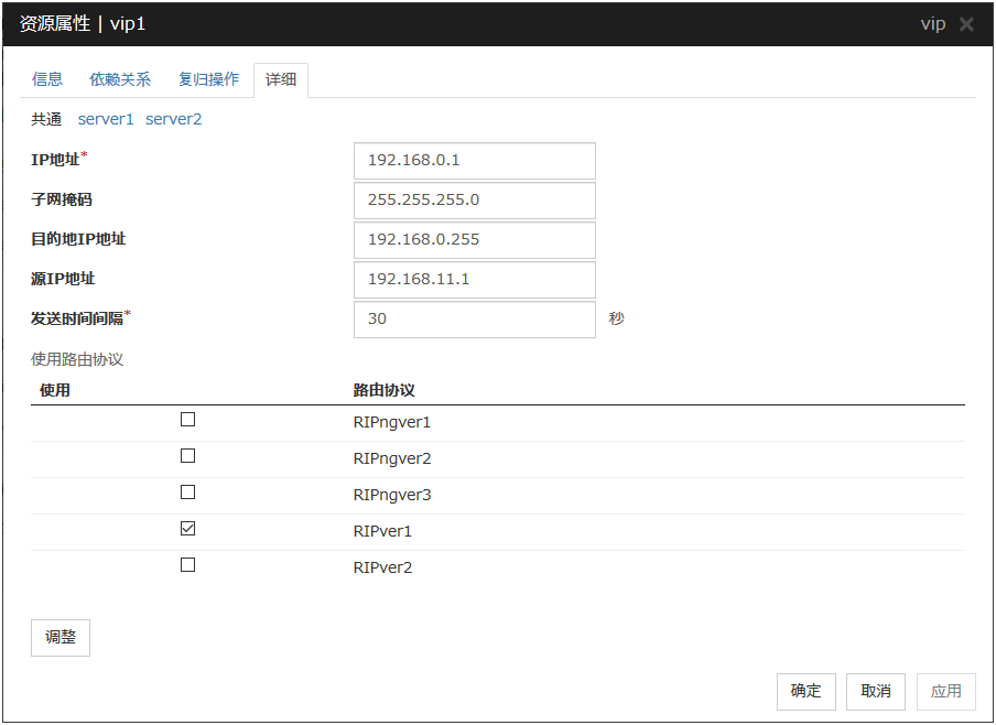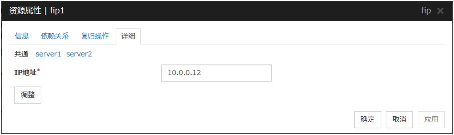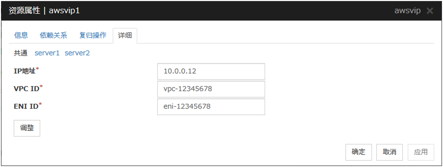 显示[Oracle Cloud 虚拟IP资源调整属性]对话框。进行Oracle Cloud 虚拟IP资源的详细设定。