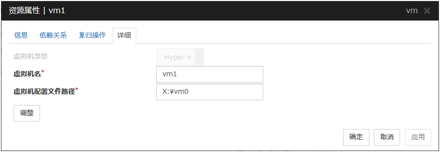 - 虚拟机组以虚拟机为单位进行失效切换(迁移)。在此组中可以登录虚拟机资源,镜像磁盘资源,磁盘资源,共享磁盘资源,NAS资源,脚本资源。