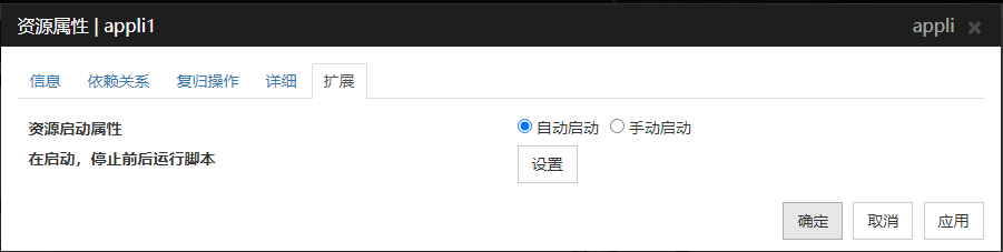 - 组的启动属性将组的启动属性设置为自动启动或者手动启动。自动启动的情况下,开始集群时,会在可启动组的,优先度最高的服务器上自动启动组。手动启动的情况下,即使服务器启动也不会启动组。服务器启动后,使用Cluster WebUI或者clpgrp命令手动启动组。Cluster WebUI的详细信息请参考在线手册,clpgrp命令的具体内容请参考本指南的"8. EXPRESSCLUSTER命令参考"的"操作组(clpgrp命令)"。