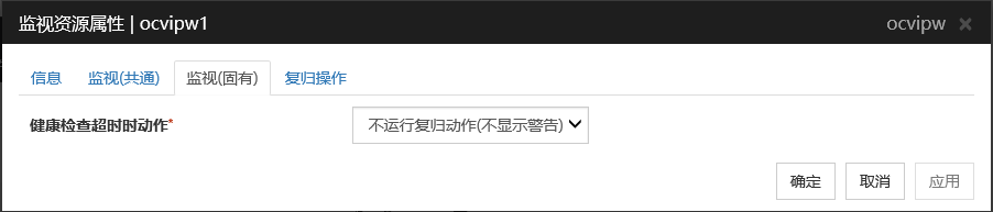 添加Oracle Cloud 虚拟 IP 资源后自动创建。对于每一个Oracle Cloud 虚拟 IP 资源都自动创建一个Oracle Cloud 虚拟 IP 监视资源。