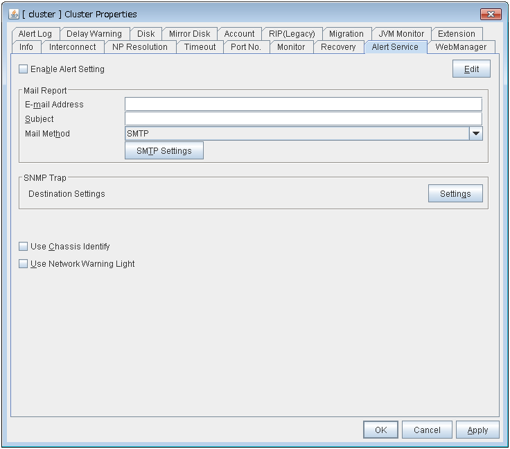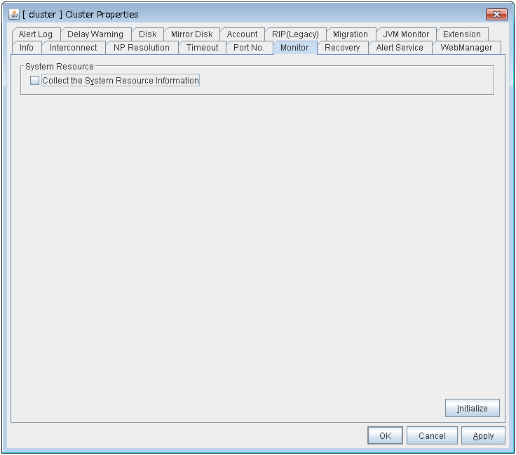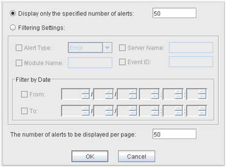 Searches for an alert.This is the same as clicking Tool on the menu bar and then selecting Alert Search.Collects logs. This is the same as clicking Tool on the menu bar and then selecting Collect Cluster Logs.