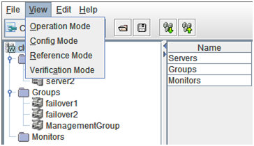 - Reference modeThis mode allows the user to see the cluster status, but not to operate the cluster.Select Reference Mode on the View menu or the toolbar to switch to the operation mode.