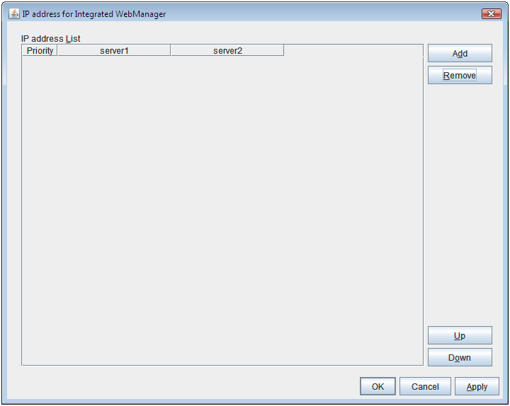Specify the floating IP address or virtual IP address for accessing WebManager for the URL when connecting from a Web browser of the management PC. These addresses are registered as the resources of the management group. When the management group does not exist, you can specify the address of one of servers configuring the cluster (fixed address allocated to the server) to connect management PC with the server. In this case, the WebManager cannot acquire the status of the cluster if the server to be connected is not working.