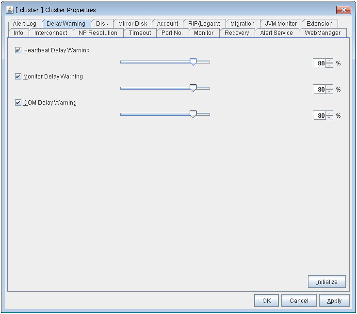 Shows messages describing EXPRESSCLUSTER operating status. For further information, see "2.5. Checking alerts using the WebManager".