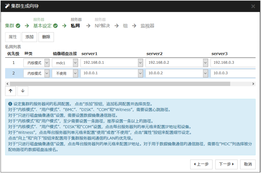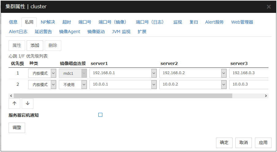 可进行失效切换的服务器列表及其列表中具有失效切换优先级的属性。
