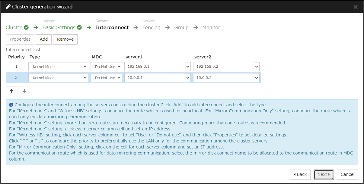 For connecting the interconnect cable, direct connection between the servers is recommended, but connection via a hub is also fine.