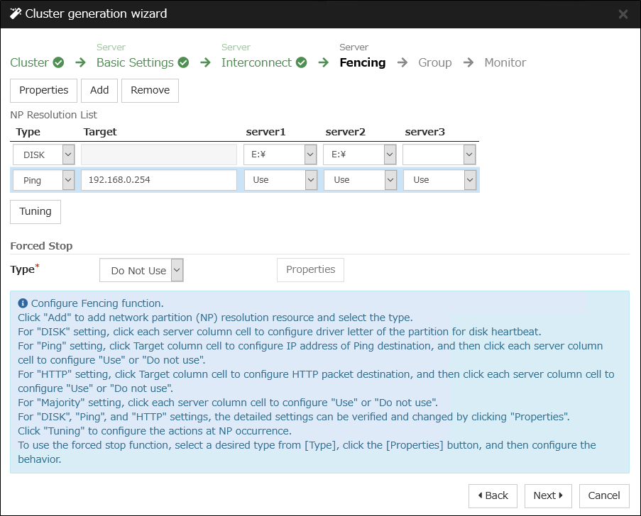 Based on the failover group information determined in the step 2, create the cluster configuration data by using the Cluster WebUI, and then configure a cluster.