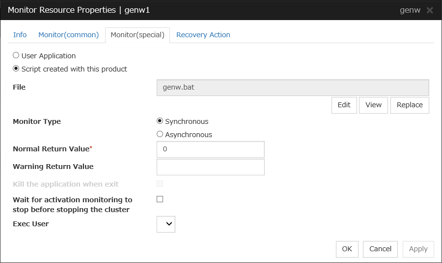 Monitoring is performed by the monitor resource while a specified group resource is active. The monitor resource does not monitor while the group resource is not activated.