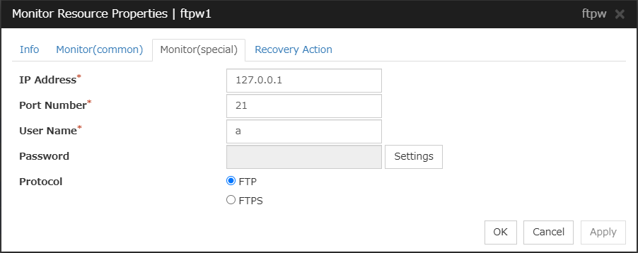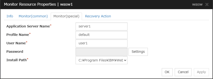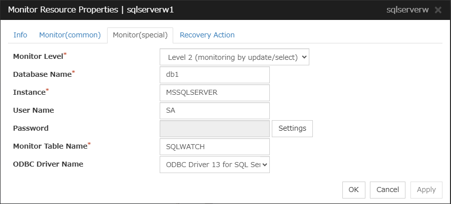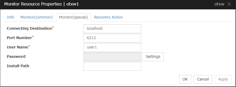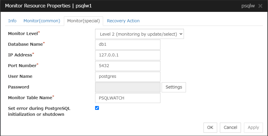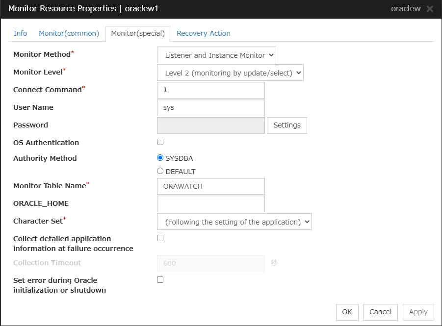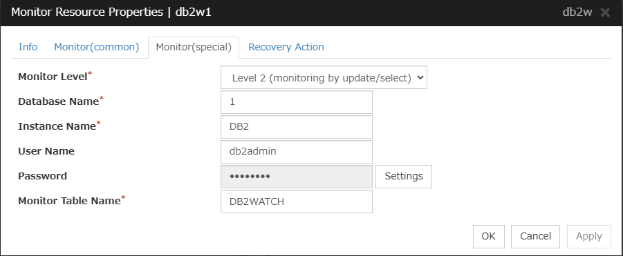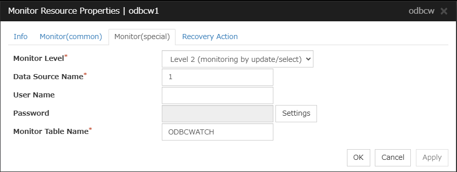The initial settings for monitoring timings of each monitor resource are shown below.