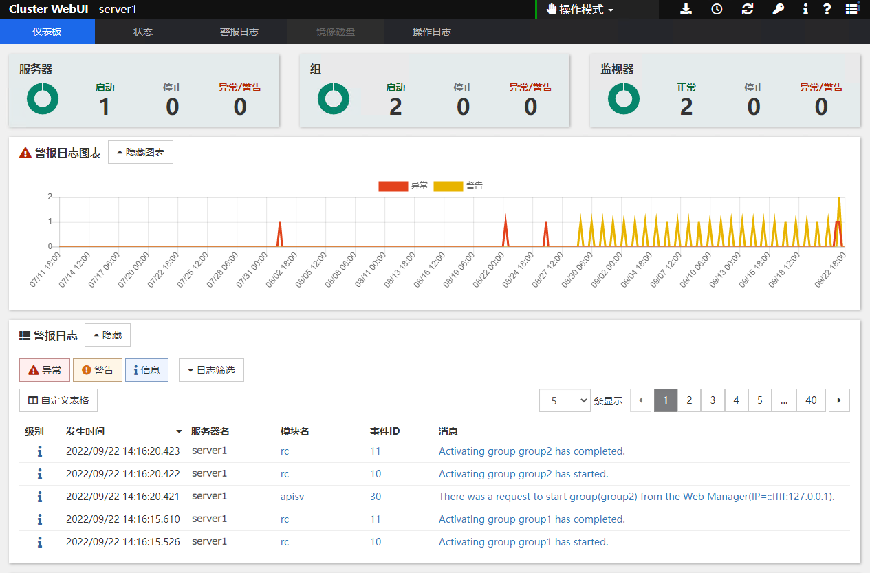 能够使用启动资源(称为应用程序资源,服务资源)启动应用程序,通过监视资源(称为应用程序监视资源,服务监视资源)定期监视进程的生存。在由于业务应用程序异常退出造成业务中断时有效。