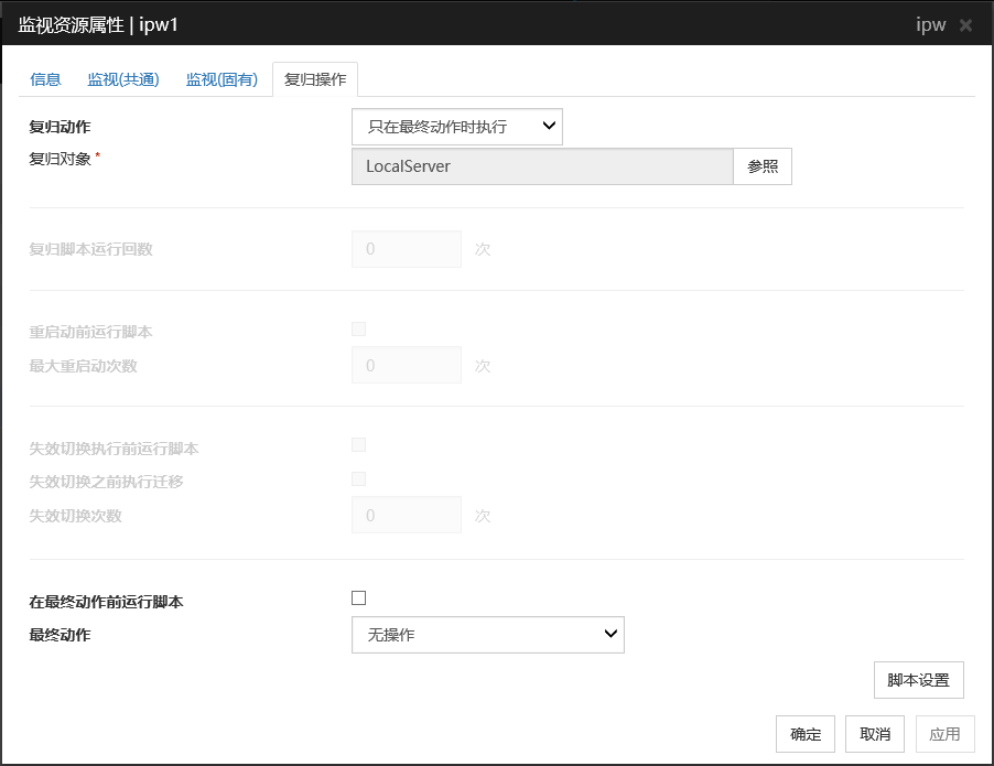 组资源,监视器资源异常被查出时最终操作执行前脚本