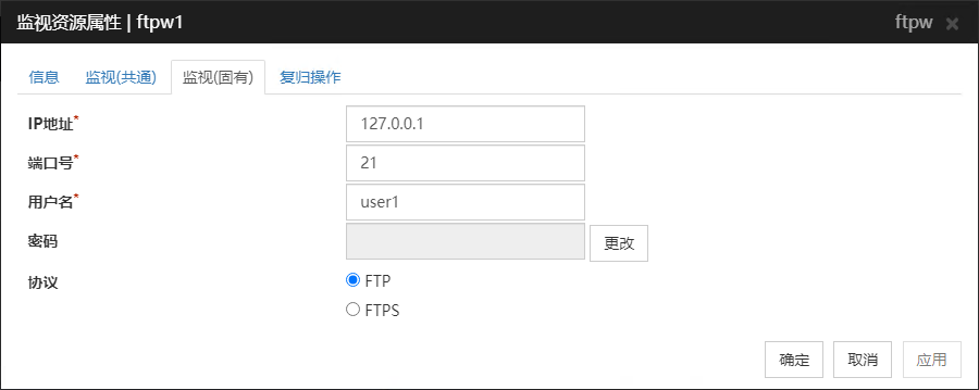 虽然需要另外购买License,但是能够进行数据库应用程序(Oracle,DB2等),协议(FTP,HTTP等),应用程序服务器(WebSphere,WebLogic等)的停止/结果异常监视。有关详情,请参照"6. 监视资源的详细信息"。
