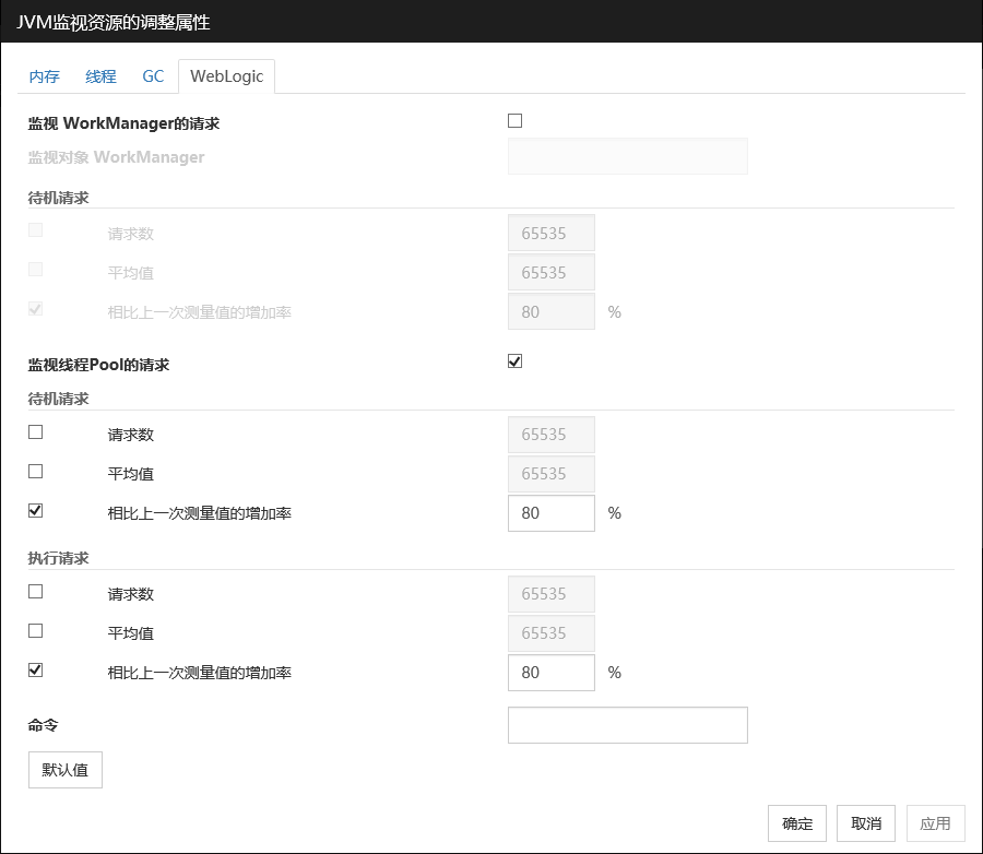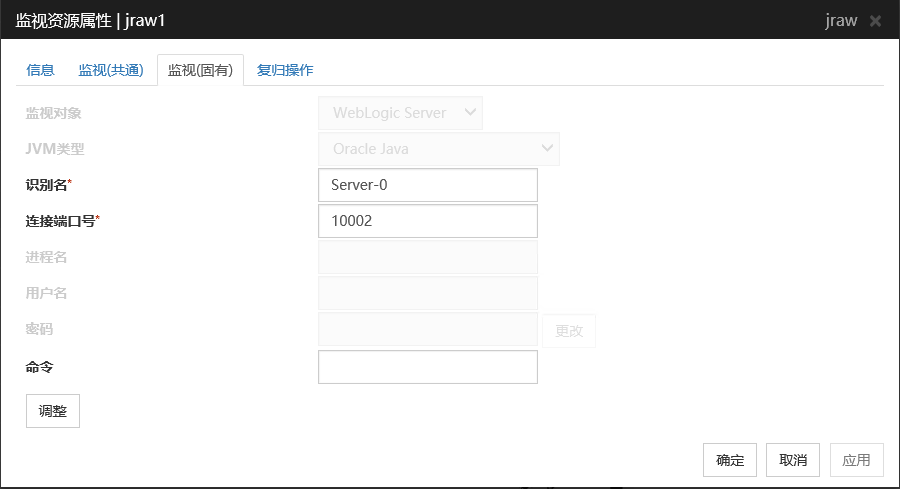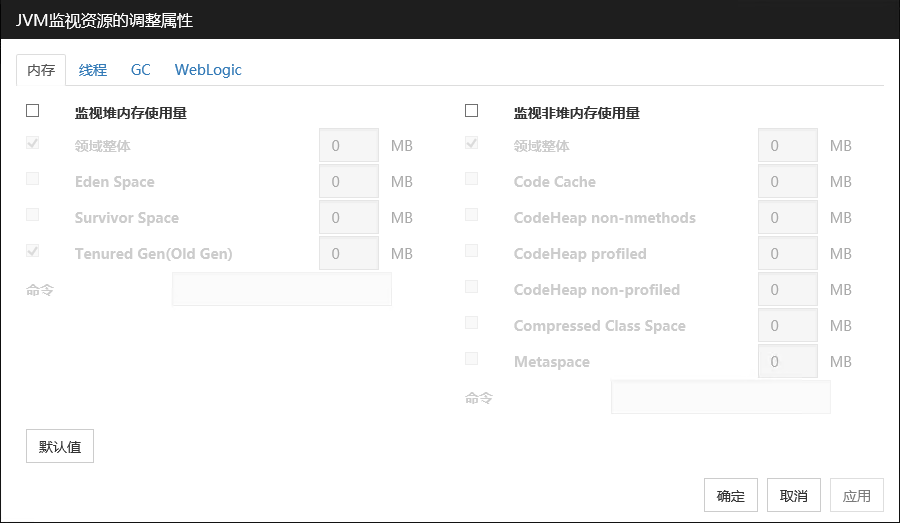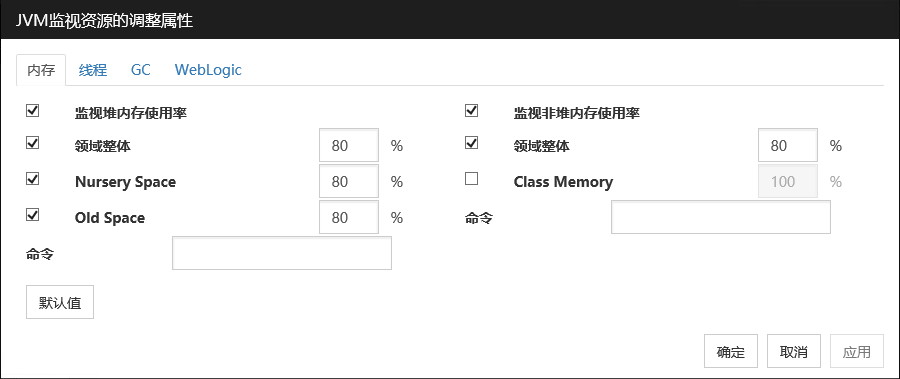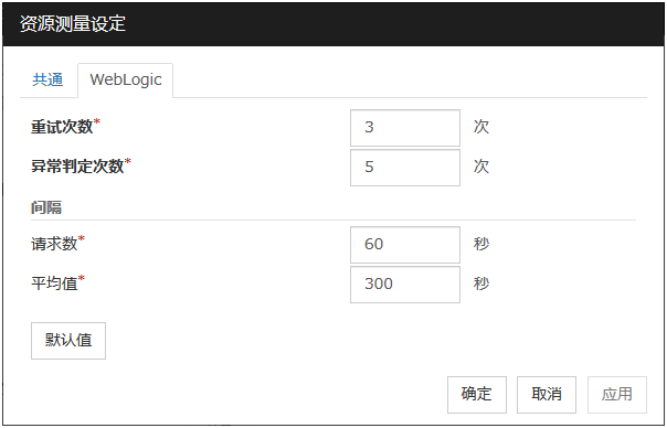 监视目标为WebLogic Server时,对于JVM监视器资源的设定值,由于系统环境(内存搭载量等)的原因,设定范围的上限值可执行会受到限制。