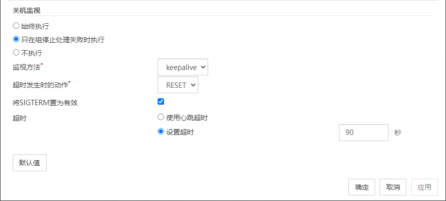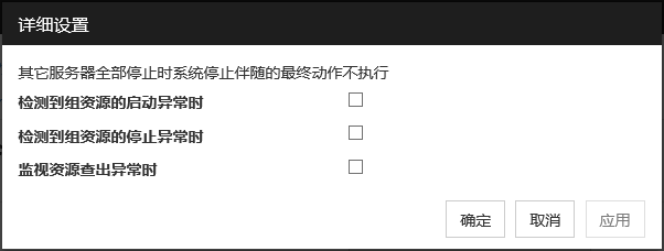 查出停止异常时,对最终运行选择[无操作],则组将在启动失败的状态下停止。在正式的运行环境下,请不要设置为[无操作]。
