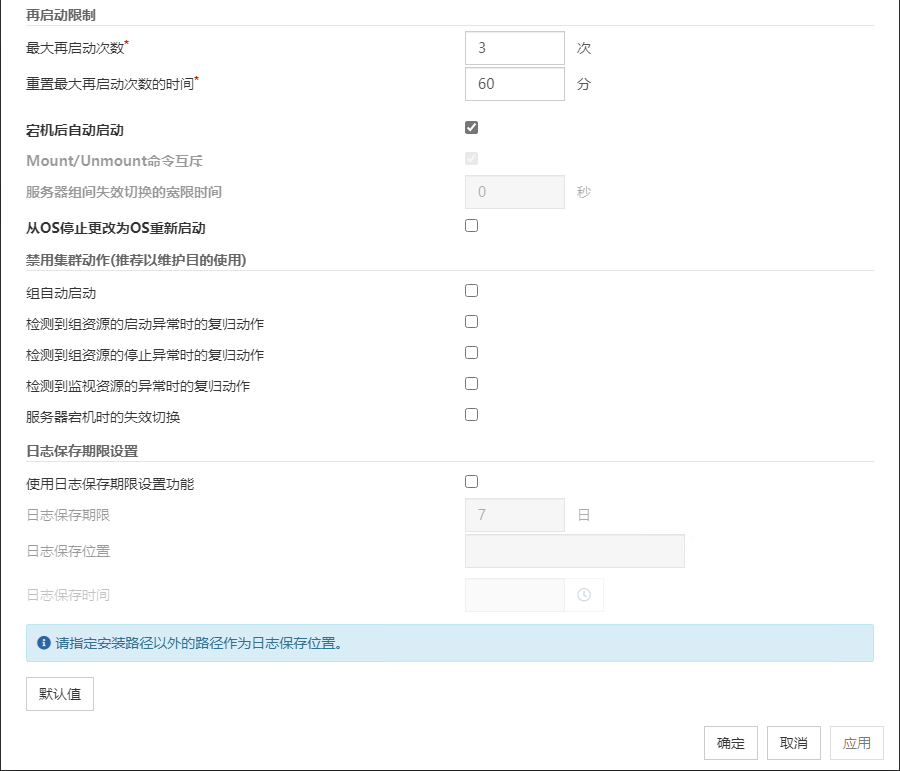 在更改监视资源的集群统计信息设置时,即使执行了挂起/复原,也无法在消息接收监视资源中反映集群统计信息的设置。如果要在消息接收资源中也反映集群统计信息,请重启操作系统。