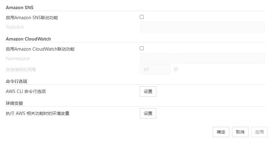 启用执行 AWS 相关功能时的环境变量]设置的功能如下。